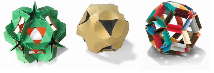 Ein kleiner Bogen Papier, ein einziger Falz – und schon entsteht ein kleines Objekt. Kaum ein Material lässt sich so vielfältig und rasch in erstaunliche Formen verwandeln wie Papier. Aus geometrischen Flächen entstehen durch Falten, Schneiden, Rillen oder Ritzen Kugeln, Sterne, Platonische oder Archimedische Körper, Falten-, Waben- oder Leporellokugeln. |