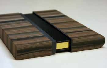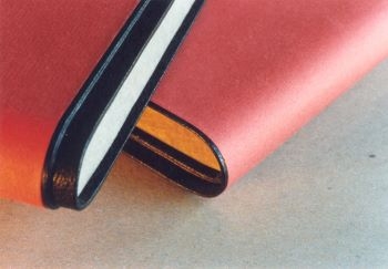 La caractéristique de l’étui design est qu’il s’applique comme un gant autour de l’ouvrage afin de le protéger complètement de la lumière et de la poussière. Grace à la réalisation du dos de forme arrondie, l’objet est très agréable au toucher. Lors de la fabrication de cet étui, nous avons toute la liberté de prévoir une ligne d’ouverture horizontale, verticale, diagonale ou sinueuse.